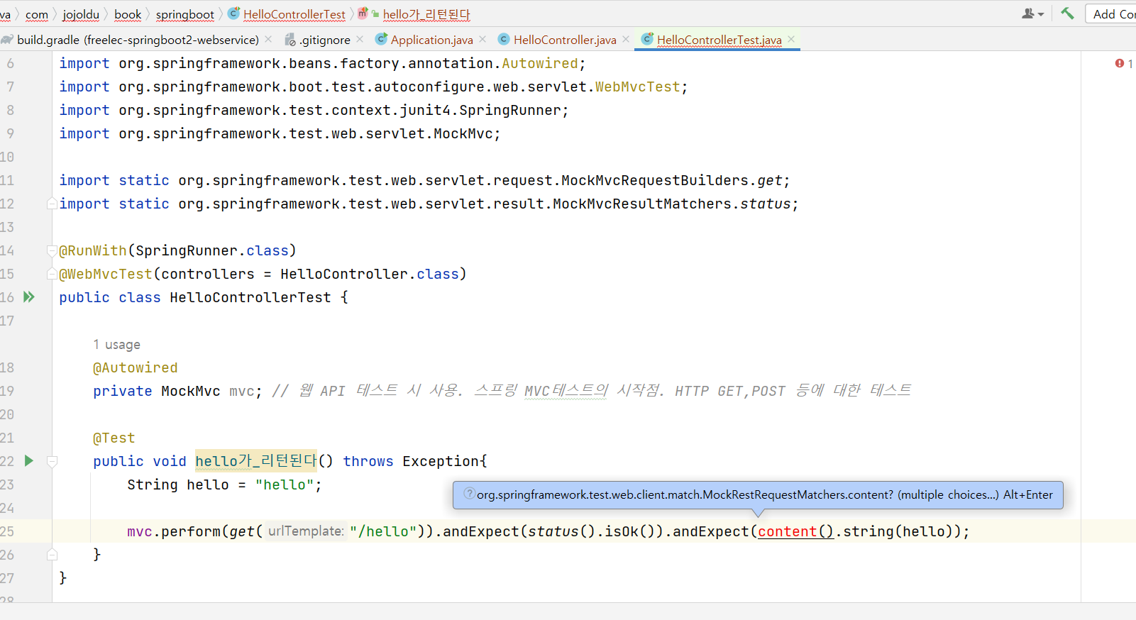 책 그대로 따라했는데 왜 빨간가 의문이 들면 alt + Enter를 눌러 import 해보자..
