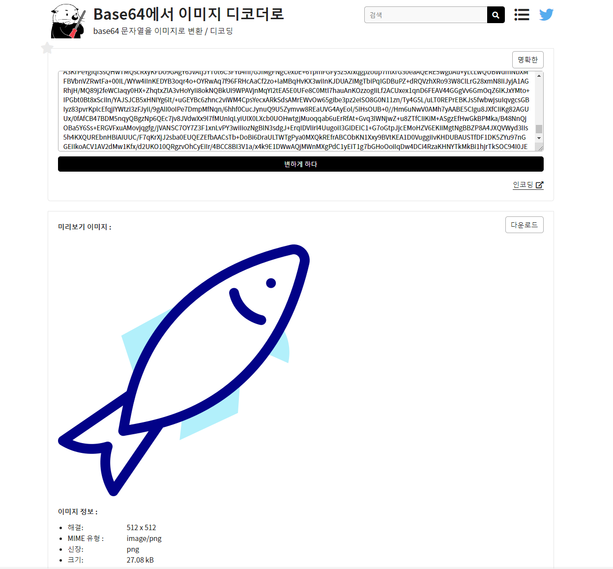 나는 이 사이트를 활용했는데 base64이미지 디코터를 검색하면 많은 사이트가 나오니 원하는 사이트에서 하면 된다.