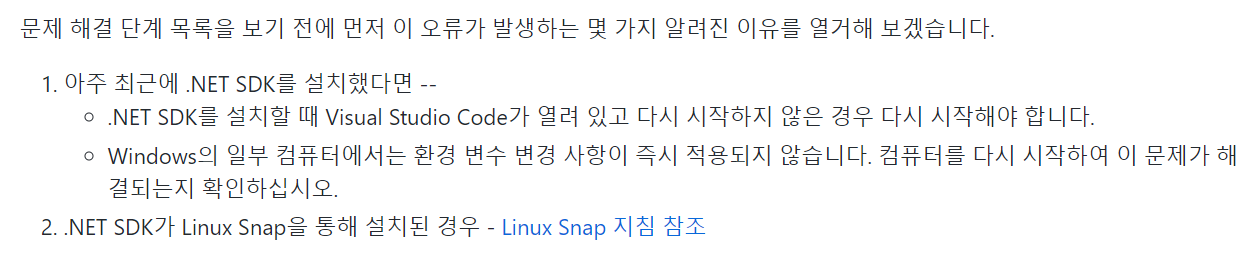 3. vscode에 뜨는 오류에서 Get the SDK 눌러서 .Net core 설치하기